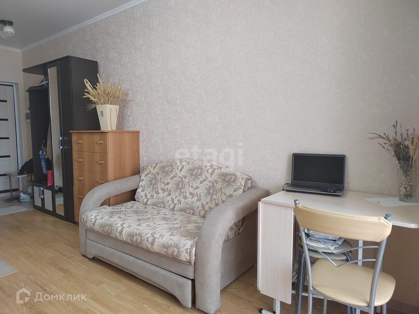 Продается шикарная студия на 7 этаже. Сделан современный ремонт, вся мебель остается. В комнате большое французкое окно - значит в квартире всегда много света. Вид из окна на город. Территория закрытая. Остановка общественного транспорта в 5 минутах ходьбы спокойным шагом. В шаговой доступности находятся аптеки, пункты выдачи заказов, детская поликлиника. Рядом расположена школа (450м), детский сад немного дальше, а также есть супермаркеты Пятёрочка и Магнит. Автобусная остановка находится неподалеку. Квартира всегда теплая и уютная.