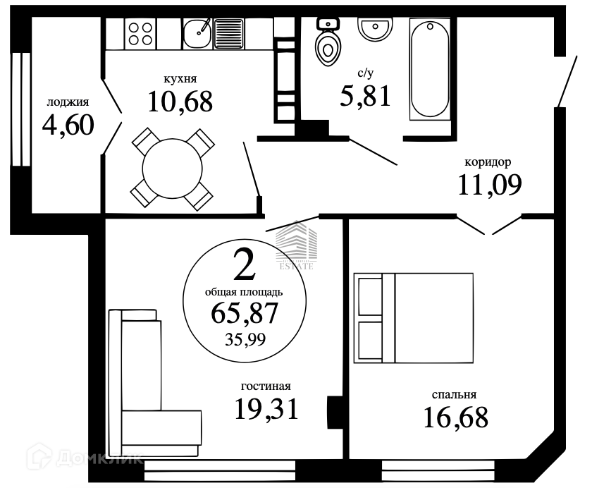 Общая площадь 66 м2