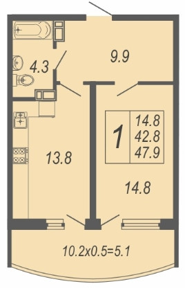 Общая площадь 48 м2