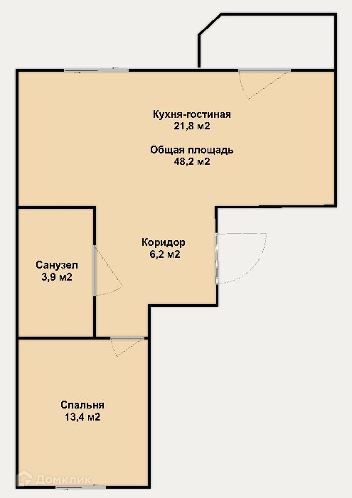 Общая площадь 48.2 м2