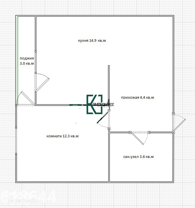 Жилая площадь 12.3 м2