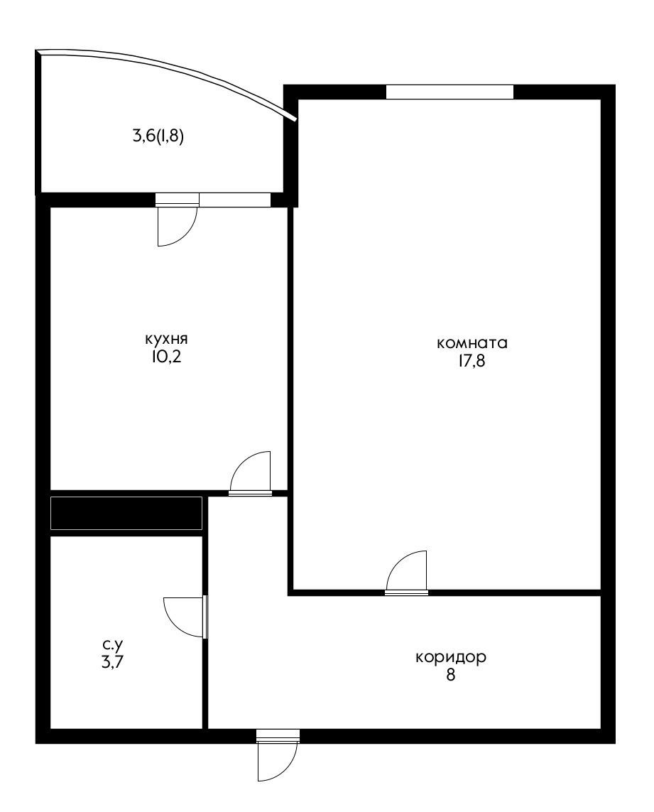 Балкон, лоджия 1 балкон