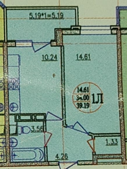 Общая площадь 39.19 м2