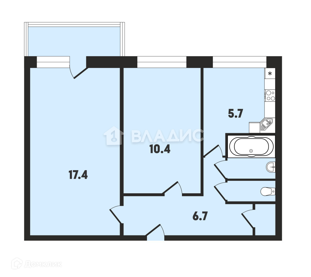 Балкон, лоджия 1 балкон