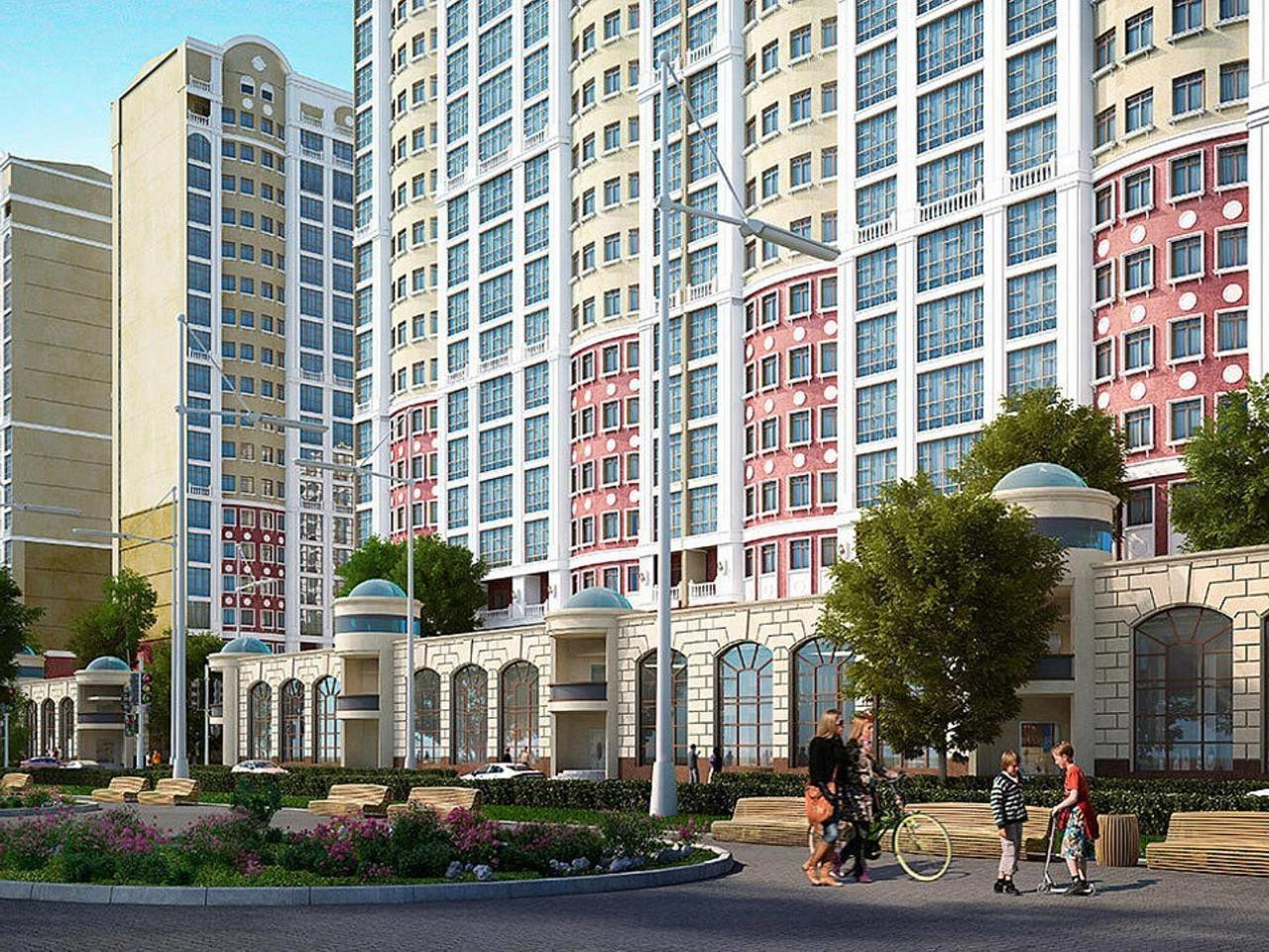 Дома на стилобате, с большими придомовыми территориями и улучшенными планировками. Стилобат, применительно к многоэтажным жилым застройкам — общий цокольный этаж, объединяющий несколько зданий, который исполняет роль пьедестала, визуально опоясывая дома, приподнимая их над уровнем земли.