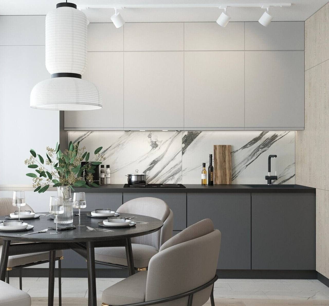 Встроенная кухня имеет все необходимое оборудование и много места для хранения кухонных принадлежностей, что обеспечит вам комфорт и удобство в приготовлении пищи.