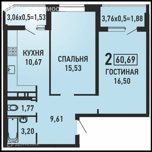 Общая площадь 64.1 м2