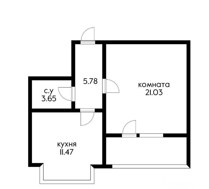 Общая площадь 43 м2