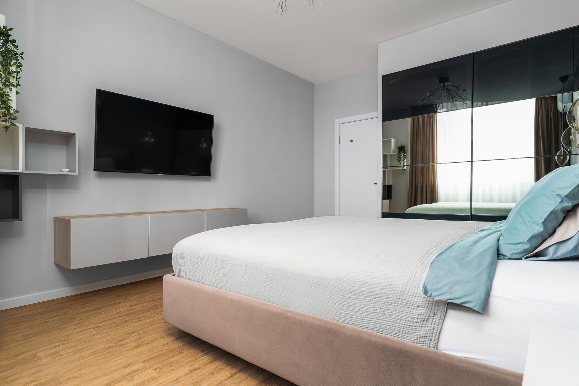 Потолок выполнен из гипсокартона. На полу - приятный тактильно и экологичный материал кварцвинил. Межкомнатные двери тяжёлые, с хорошей звукоизоляцией. Стены выровнены и оклеены обоями под покраску. Новым хозяевам остаются: два встроенных шкафа-купе; кухня с вытяжкой, варочной панелью и духовым шкафом.