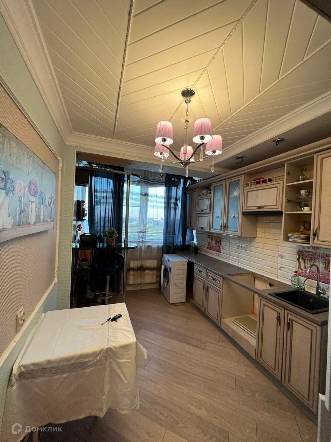 Двери-купе на кухне и в комнате, много светильников, и света.