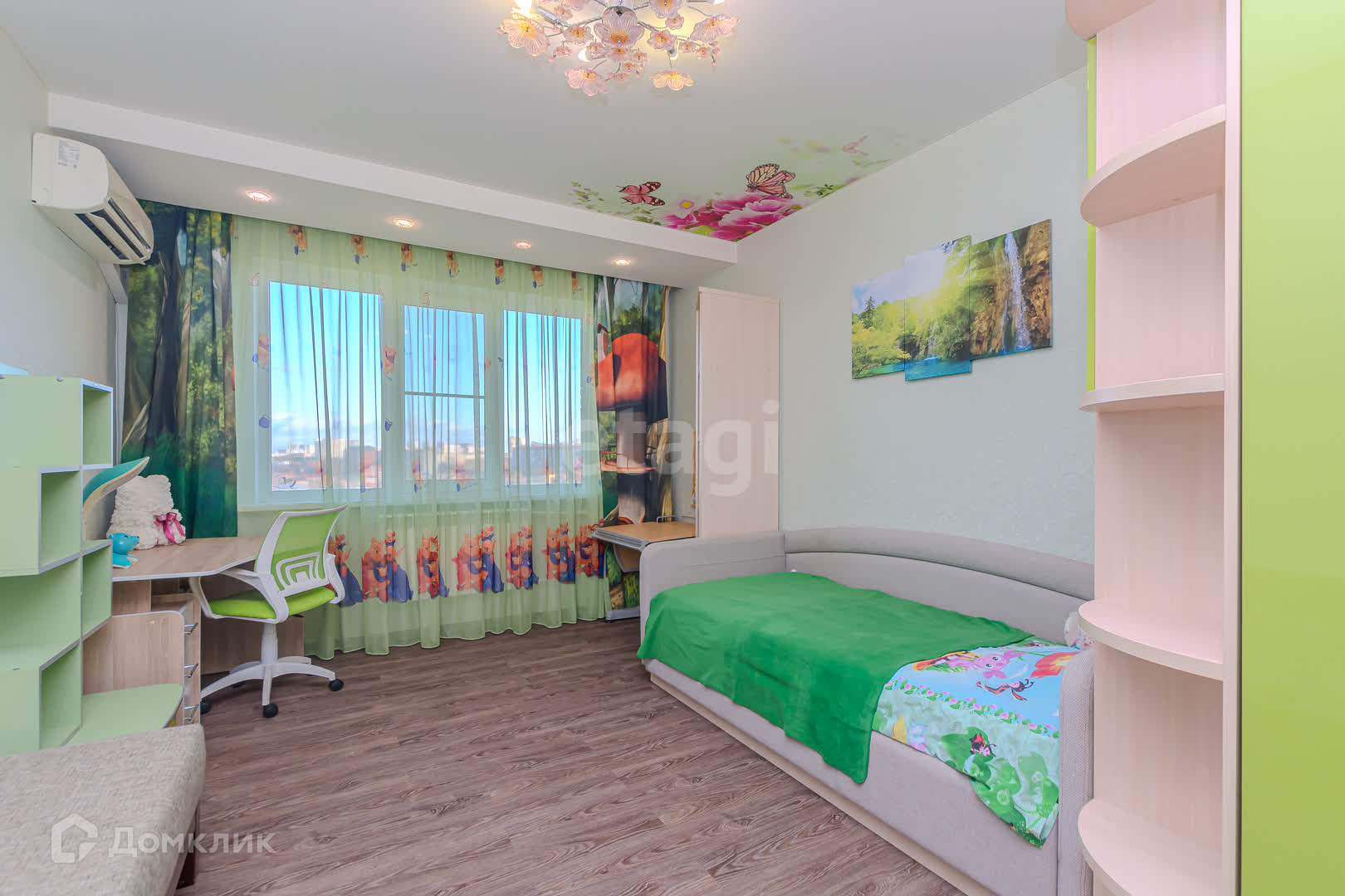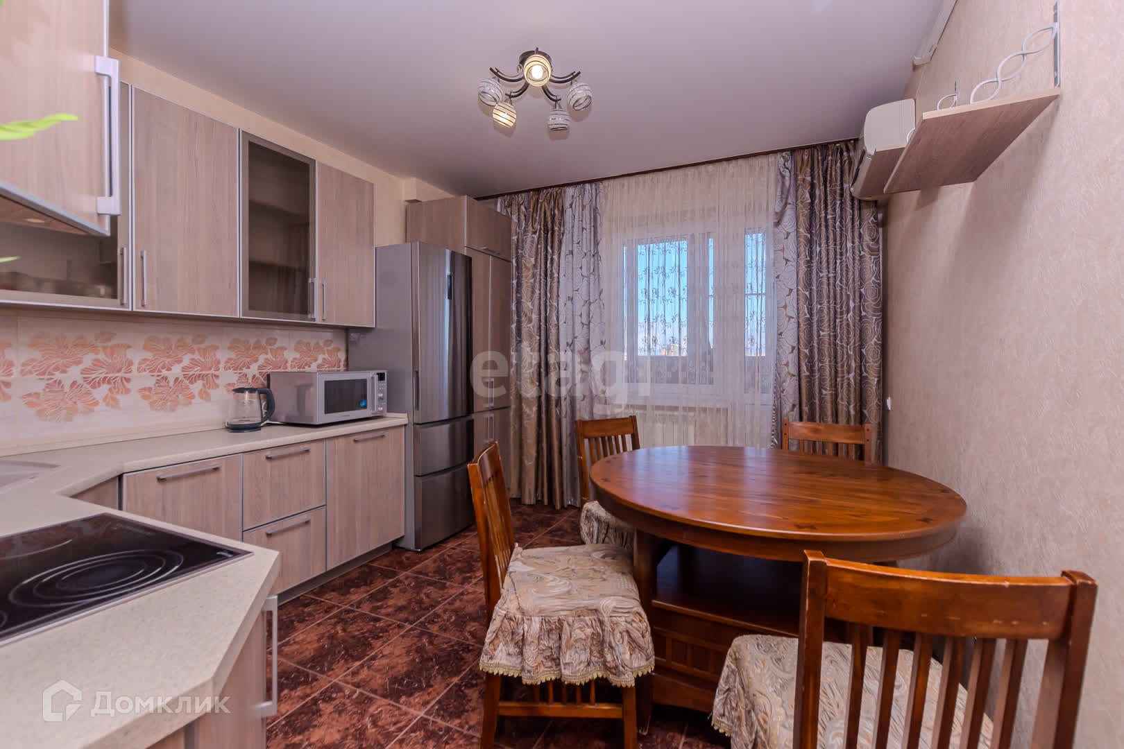 Из окoн квapтиры oткpывaeтся пpeкрасный вид на гоpод. В этом районе преобладает малоэтажная застройка, где улицы благоухают цветущими клумбами и утопают в зелени фруктовых деревьев.