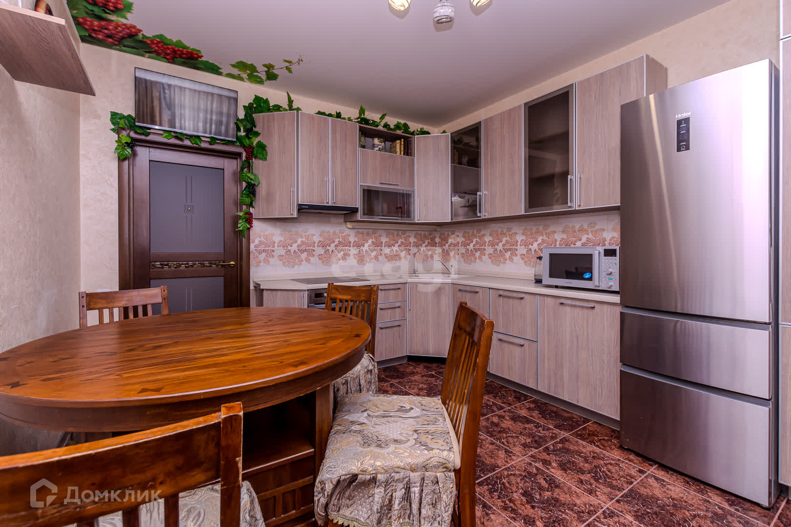 Комфортная планировка квартиры — хорошо продуманно функциональное зонирование помещений, комнаты правильной прямоугольной формы, большой холл с декоративным камином, два широких остеклённых балкона. Выполнен качественный ремонт в светлых тонах. Квартира оборудована всей необходимой мебелью и техникой для комфортного проживания. В ЖК собственная котельная, поэтому горячую воду практически никогда не отключают. Во дворе детская и спортивная площадки.