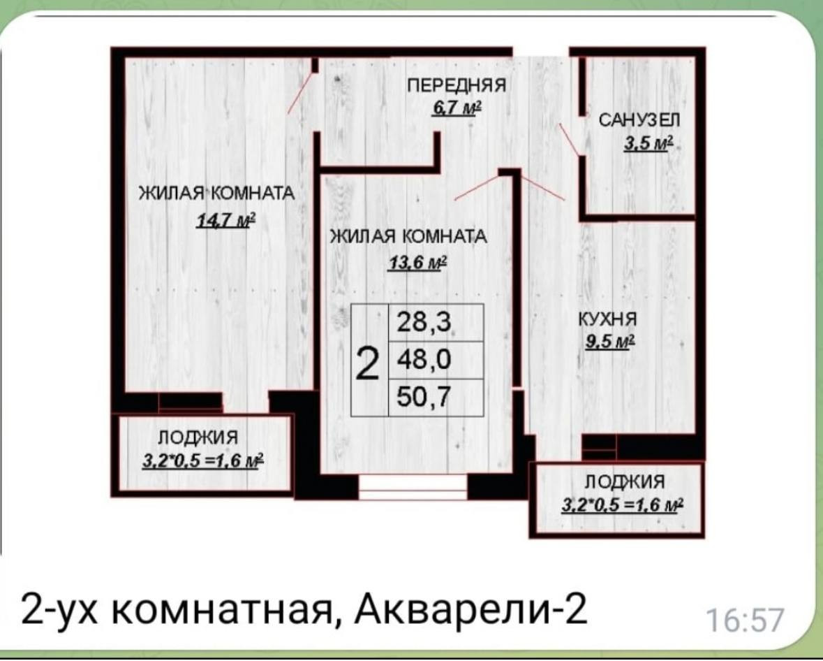 Общая площадь 51 м2
