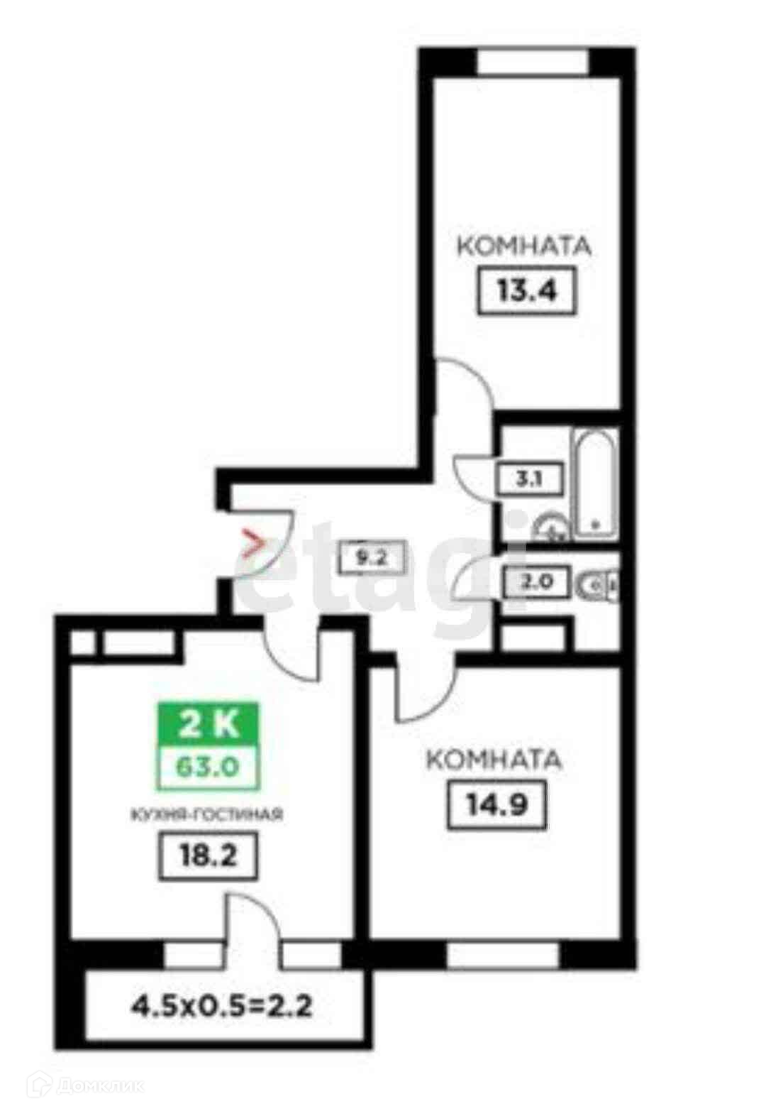 Общая площадь 63.5 м2