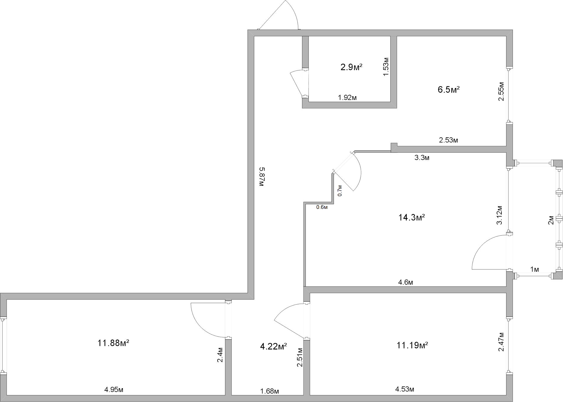 Высота потолков 2.5 м