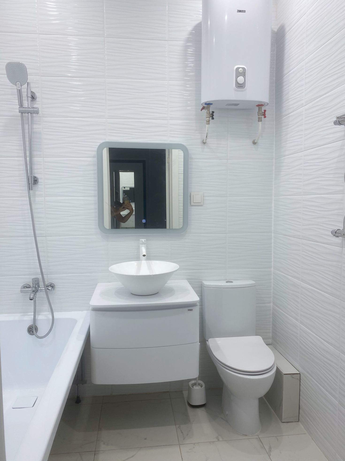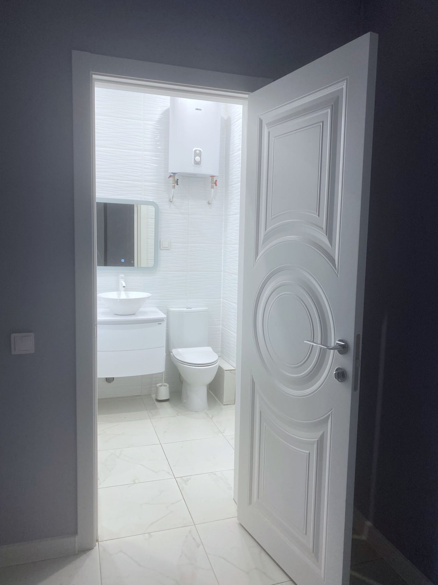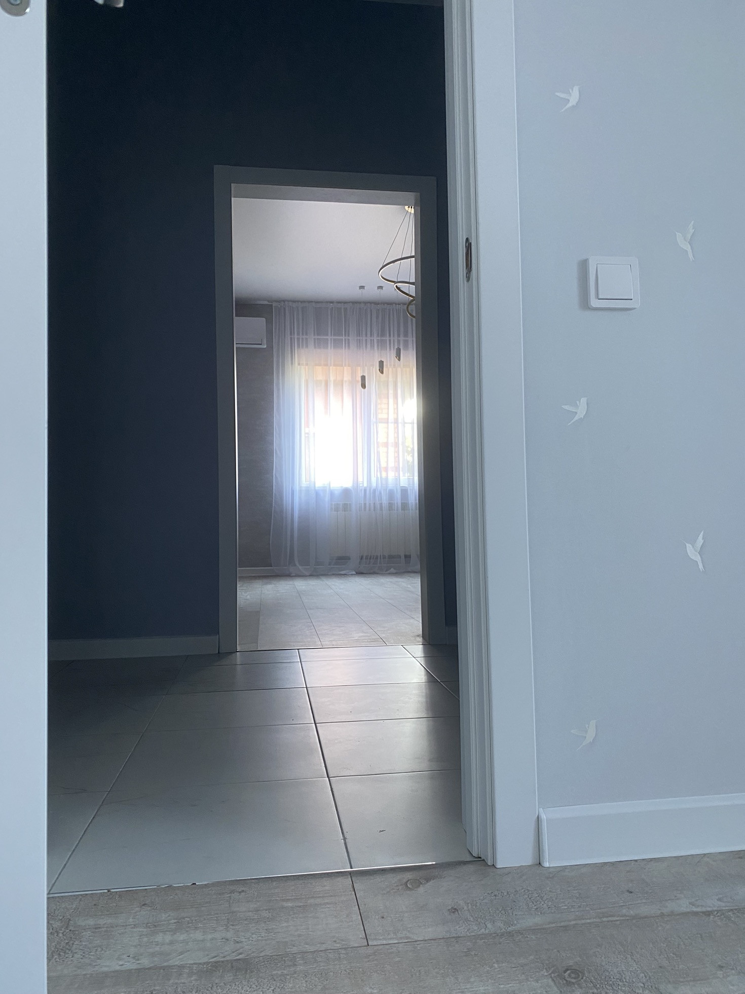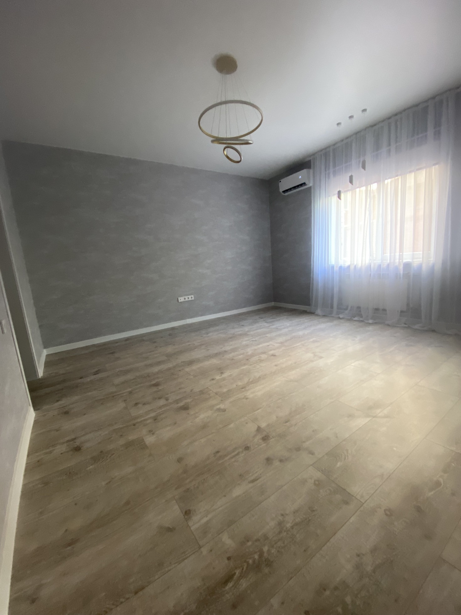 Сделан дизайнерский ремонт с качественных современных материалов , квартира в светло голубо -серых тонах,заказные межкомнатные двери , входная дверь с зеркалом , натяжные сатиновые потолки с современными люстрами, установлены жалюзи и тонкие капроновые шторы , новый кондиционер, отличная новая сантехника , нагреватель,замена проводки ,ламинат , обои Германия ,