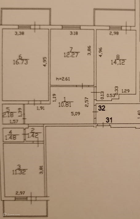 Жилая площадь 43.12 м2