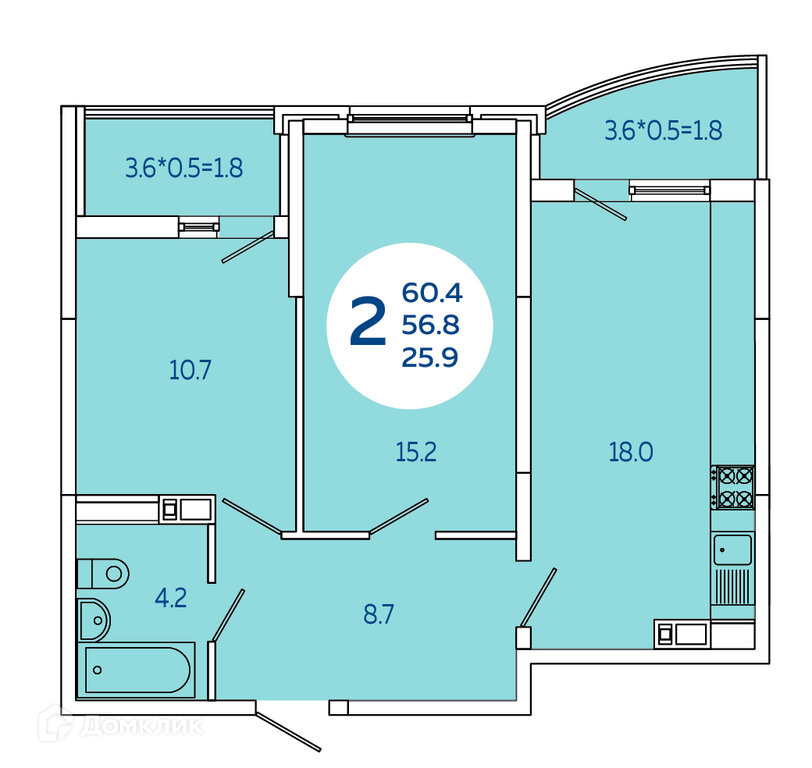 Общая площадь 60.4 м2
