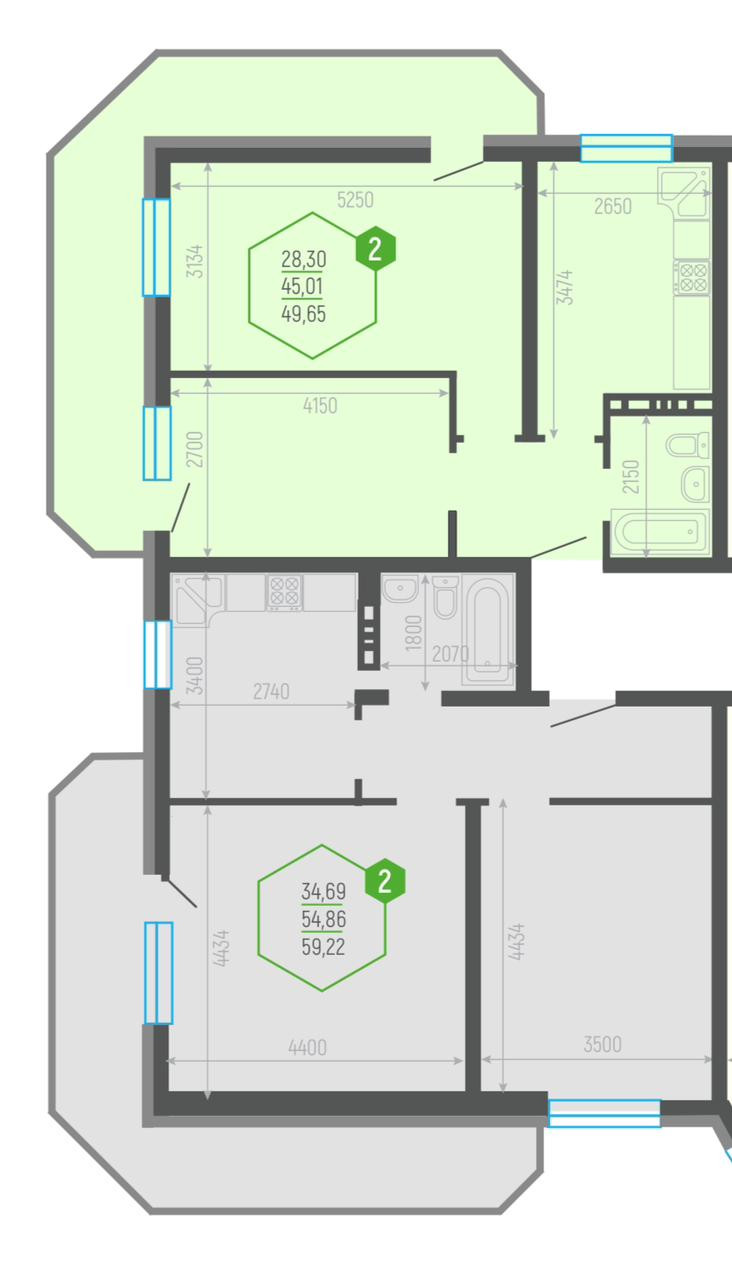 Количество комнат 2