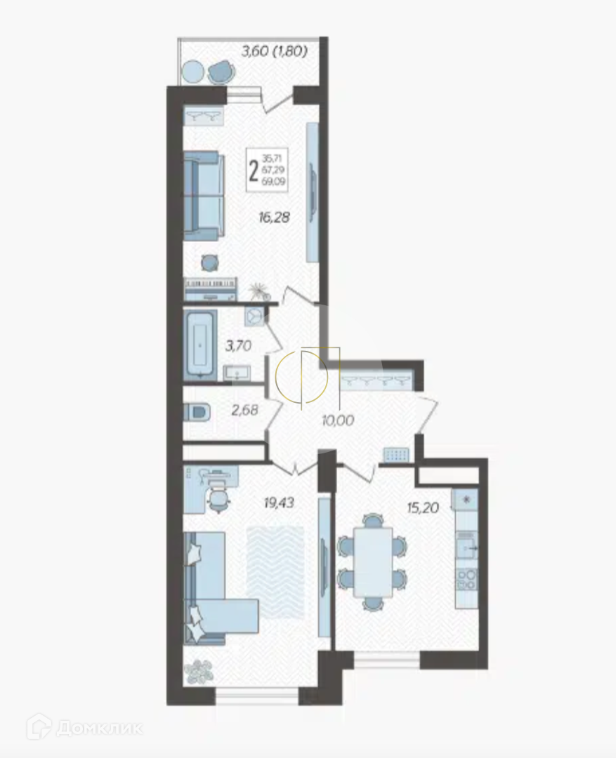 Закрытая территория комплекса. Квартира расположена на 3 этаже. Планировка: общ. S= 70 кв.м, 2 изолированная комната и кухня-гостиная, раздельный с/у, просторная витражная лоджия. Высота потолков 2,80 м. Состояние квартиры - предчистовая отделка от застройщика.
