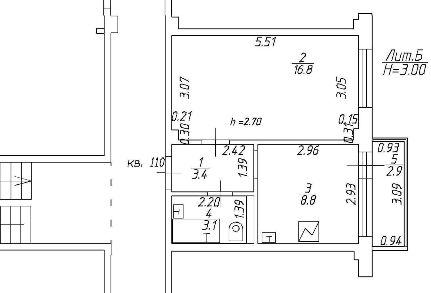 Балкон, лоджия 1 балкон