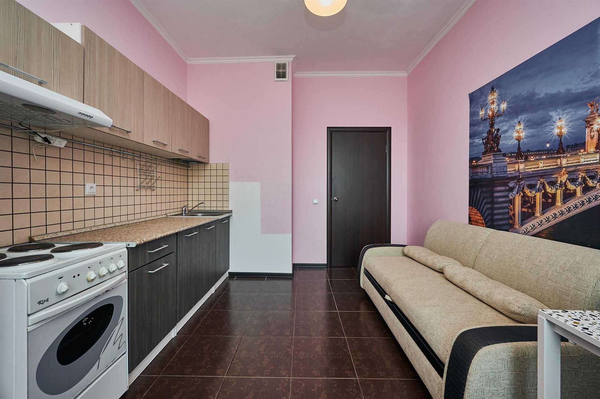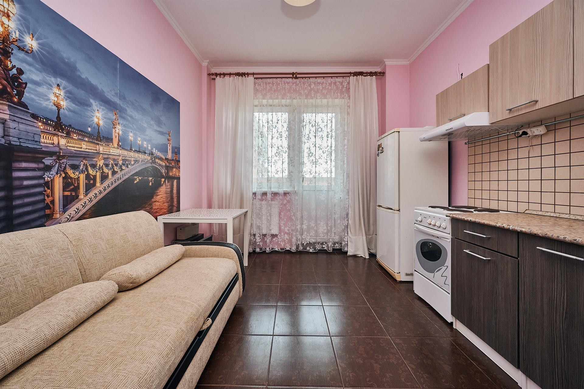 Общая площадь квартиры 47,6 кв. м. Она полностью меблированная и оборудована всей необходимой бытовой техникой. Квартира на 15-м этаже из 17. Из окон открывается прекрасный вид на город.