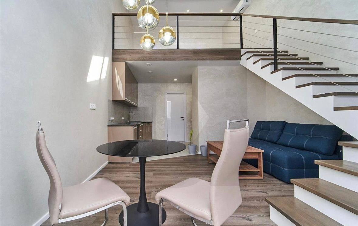 Из мебели кухня (варочная панель и вытяжка), диван, 6 стульев, стол. Санузел полностью укомплектован.