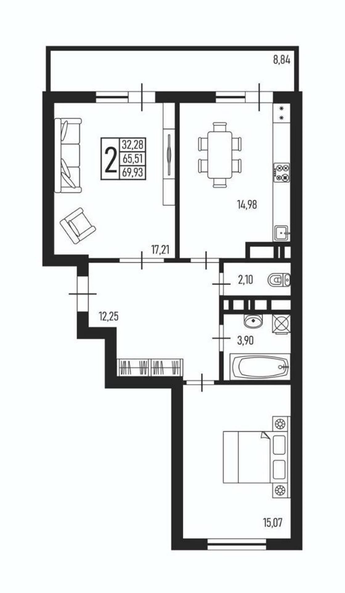 Общая площадь 70 м2