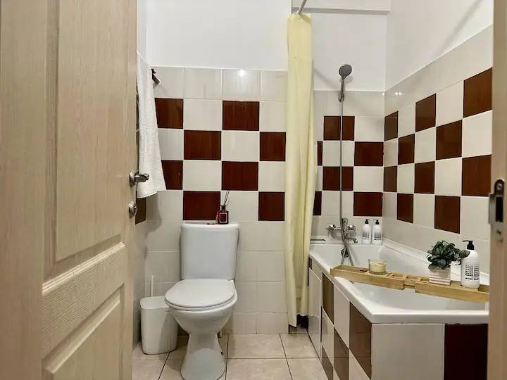 Современная ванная комната оборудована всем необходимым для комфортного проживания. Качественные отделочные материалы и сантехника создают ощущение роскоши.