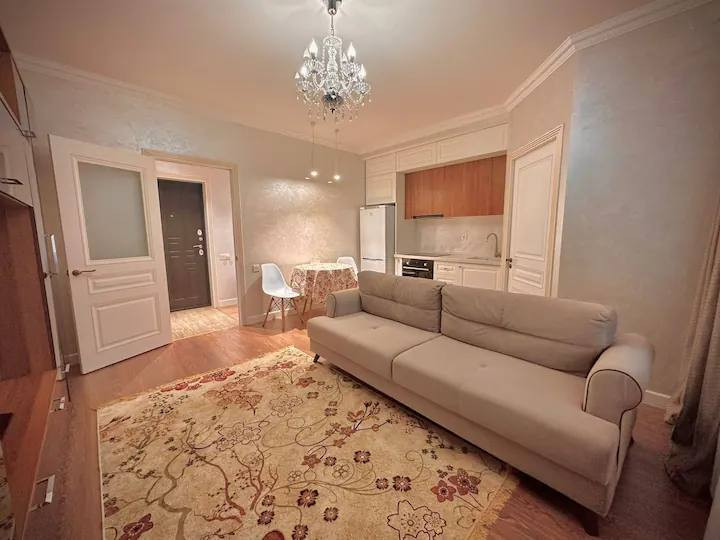 Площадь квартиры составляет 69.7 квадратных метров, что делает её идеальным вариантом для семьи или для тех, кто ценит простор и комфорт. Квартира имеет удачную планировку, где каждая комната оптимально используется.