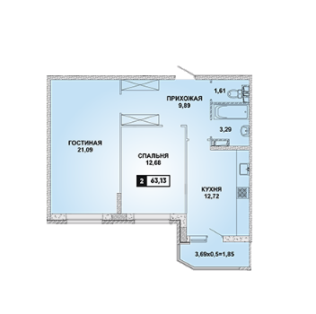 Общая площадь 63 м2