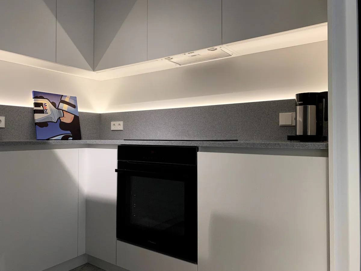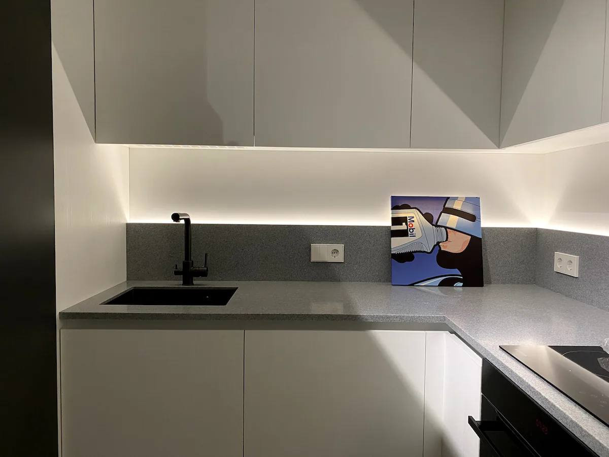 Кухня полностью оборудована современной техникой и имеет достаточно места для хранения продуктов. В ванной комнате есть современная сантехника.