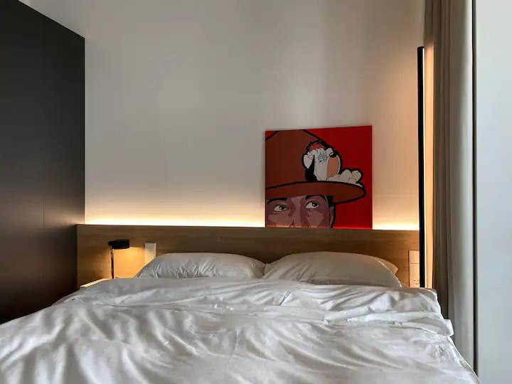 Интерьер квартиры выполнен в современном стиле, с использованием качественных материалов и акцентом на функциональность. В комнате есть все необходимое для комфортного проживания: удобная двуспальная кровать, гардеробная и рабочее место.