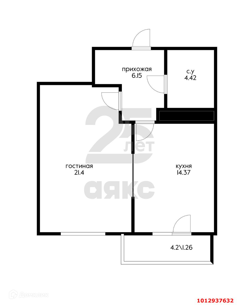 Балкон, лоджия 1 балкон