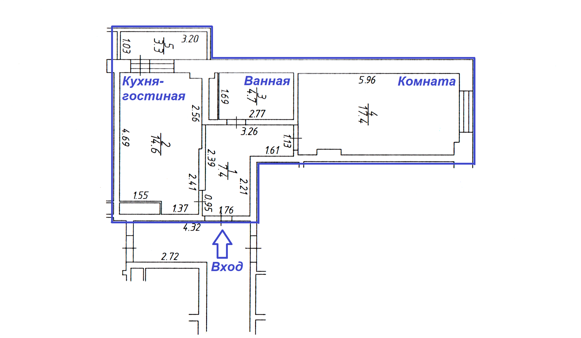 Комната и кухня-гостиная выходят окнами на разные стороны здания и разделены коридором, что создает ощущение простора и уединенности.