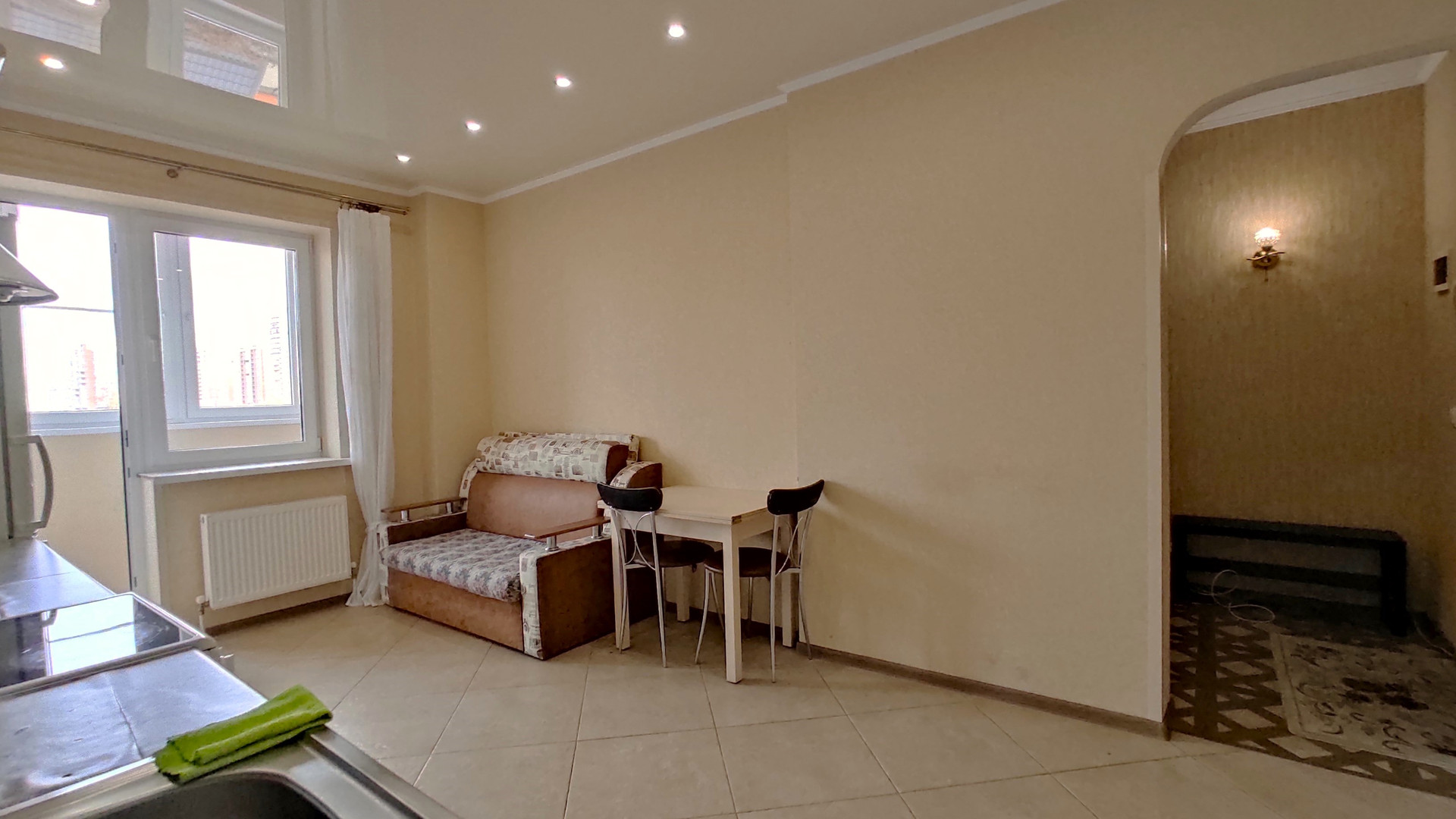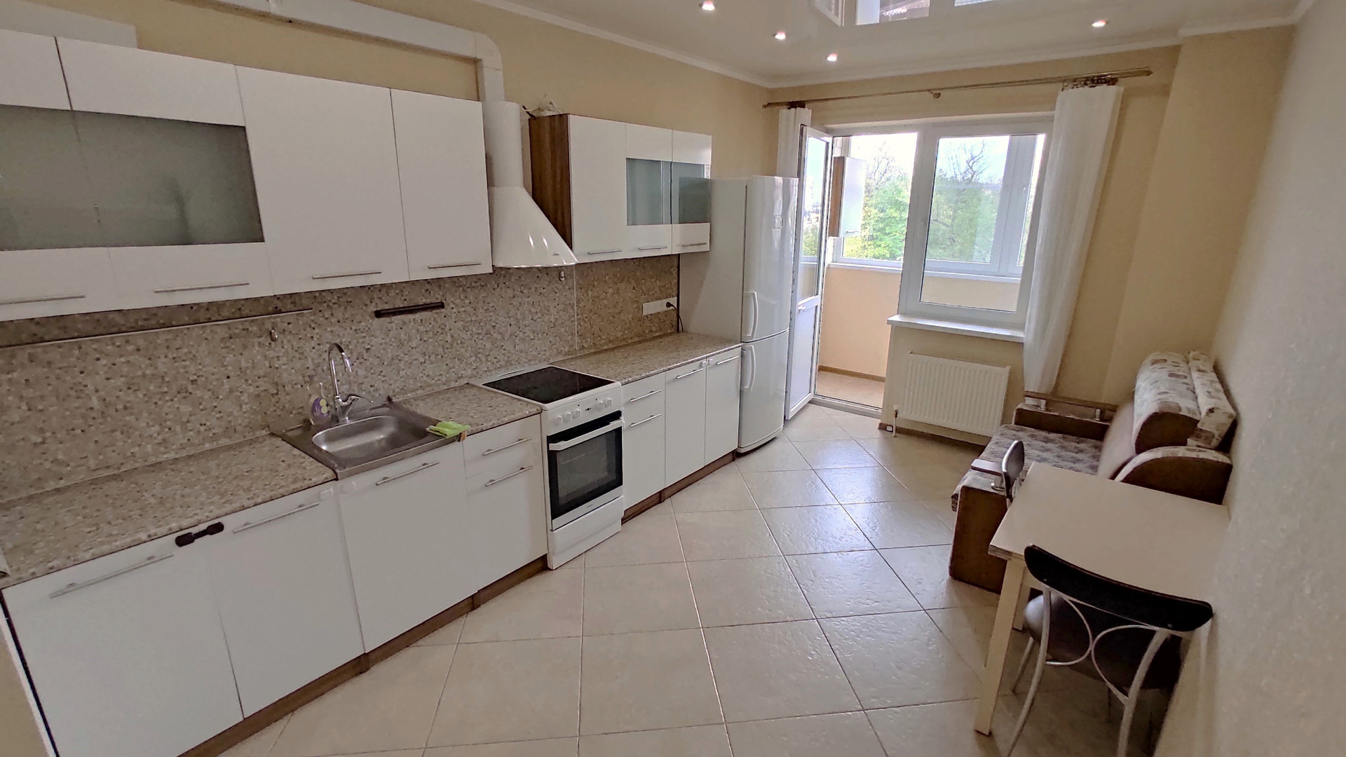 Просторная светлая кухня-гостиная с выходом на балкон. Отличная звукоизоляция.