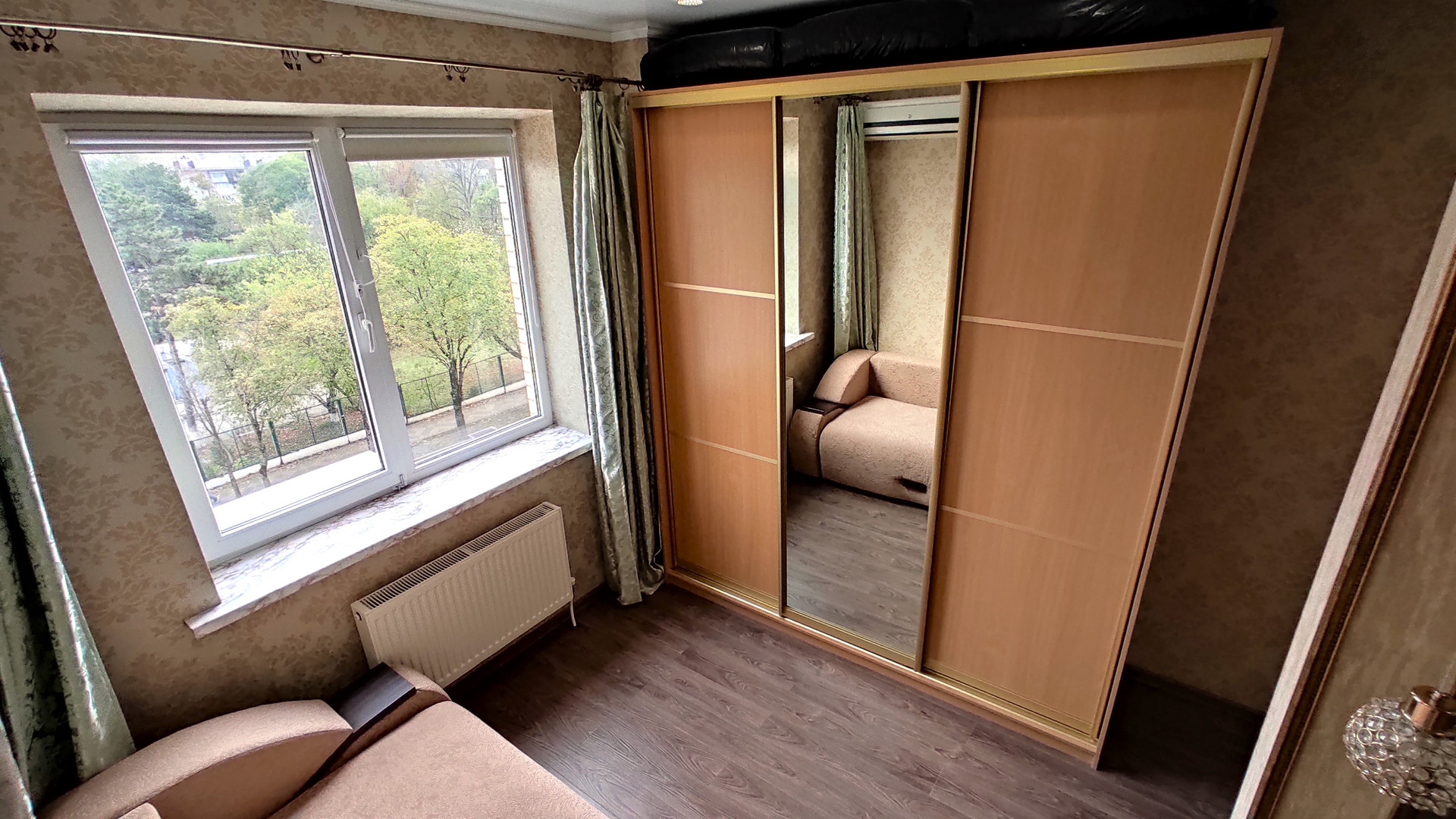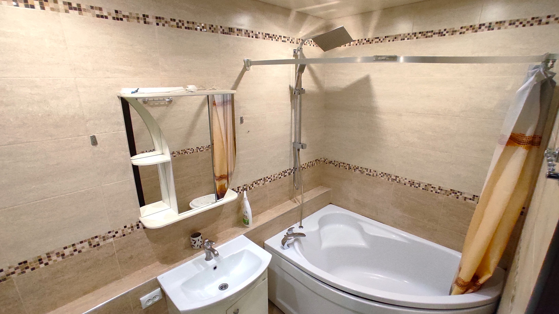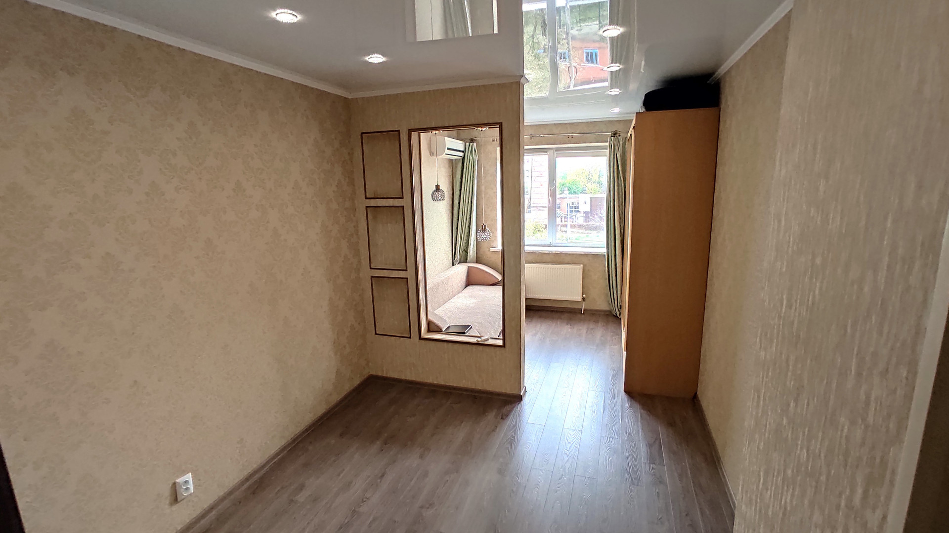 Качественный ремонт. В ванной - большая угловая ванна и тропический душ. В комнате - вместительный шкаф-купе и новый диван-кровать с отсеком для хранения.