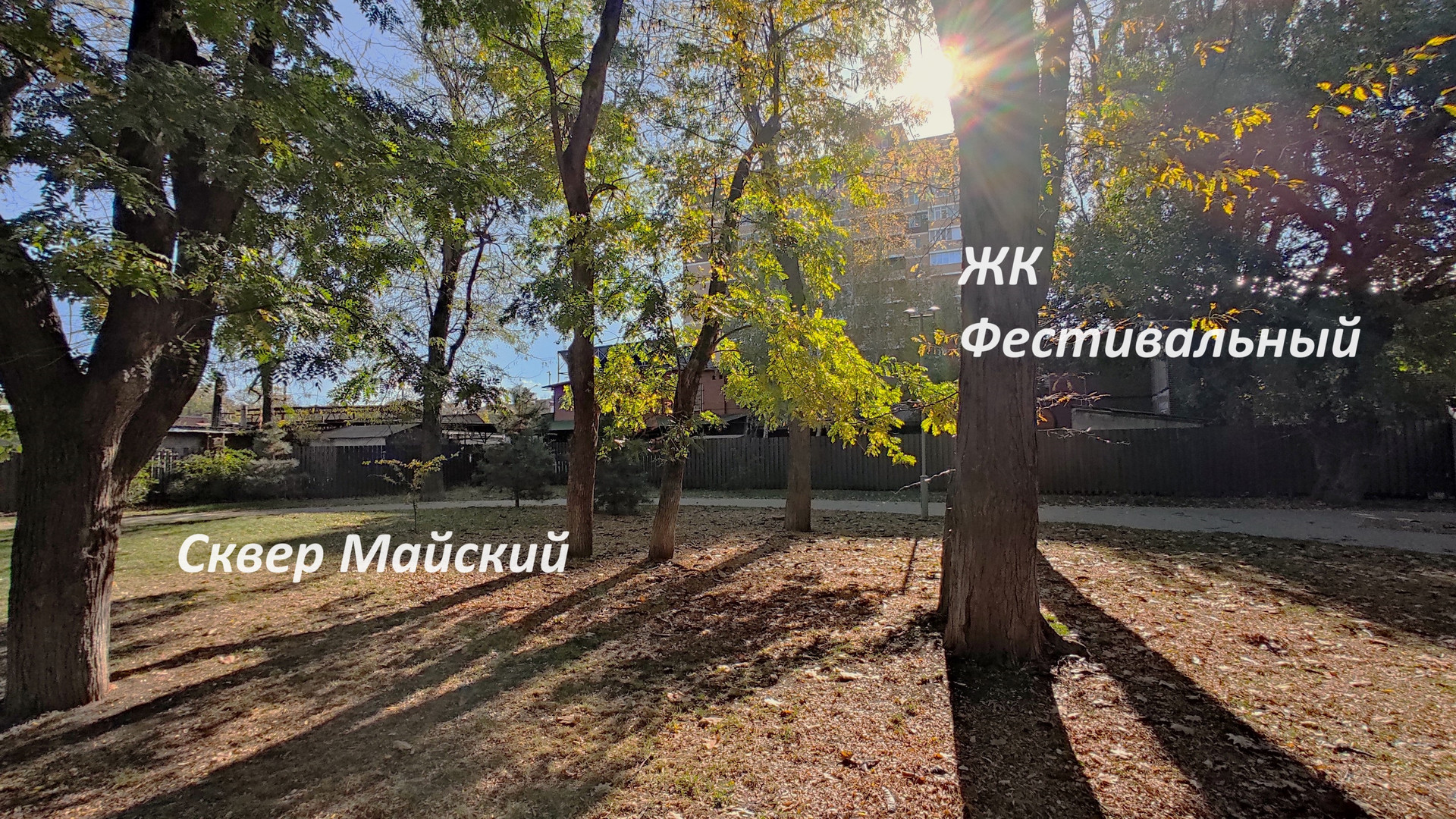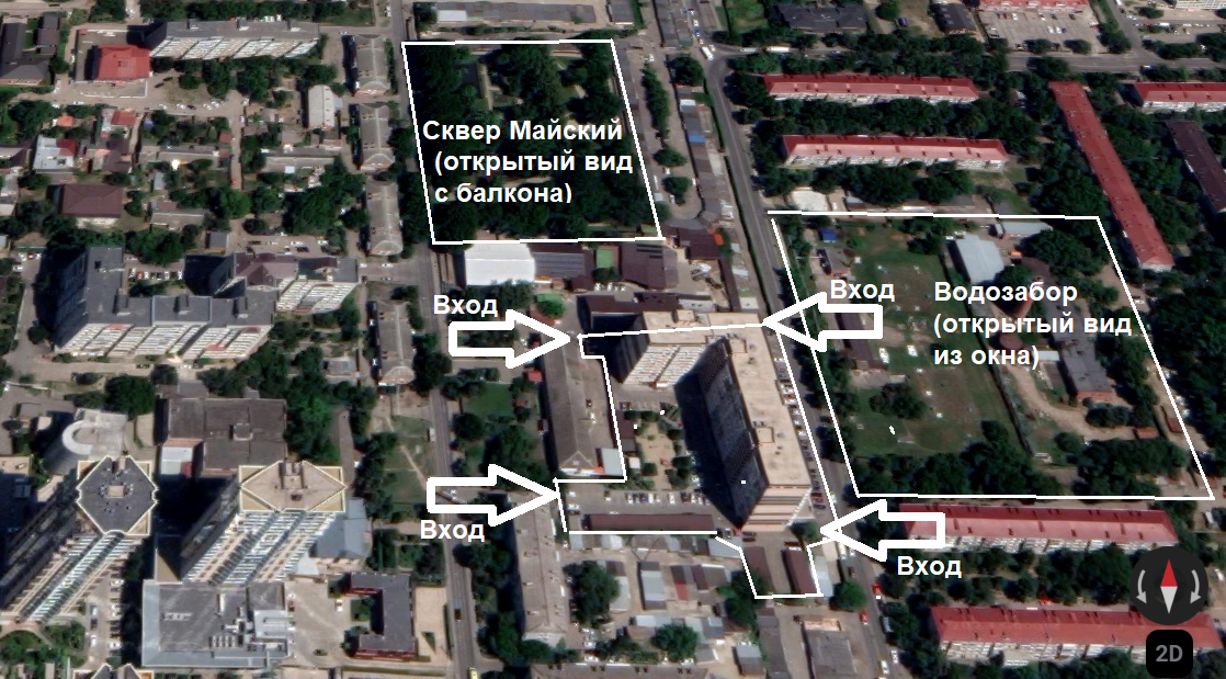 Прямо за окнами дома находится сквер "Майский" с его тенистыми деревьями, скамейками, дорожками для прогулок, детской площадкой и площадкой для занятий спортом.