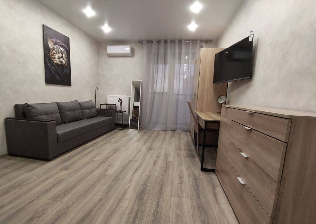 Продаю прекрасную студию. В квартире хороший новый ремонт, на полу в комнате ламинат, в санузле кафель, натяжные потолки, на стенах обои. Квартира полностью готова, после ремонта никто не жил.