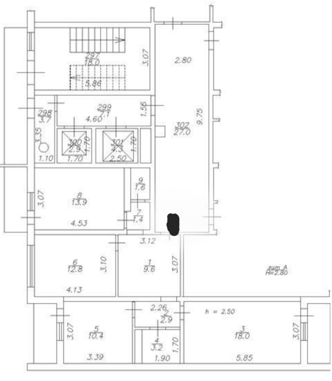 Высота потолков 2.8 м