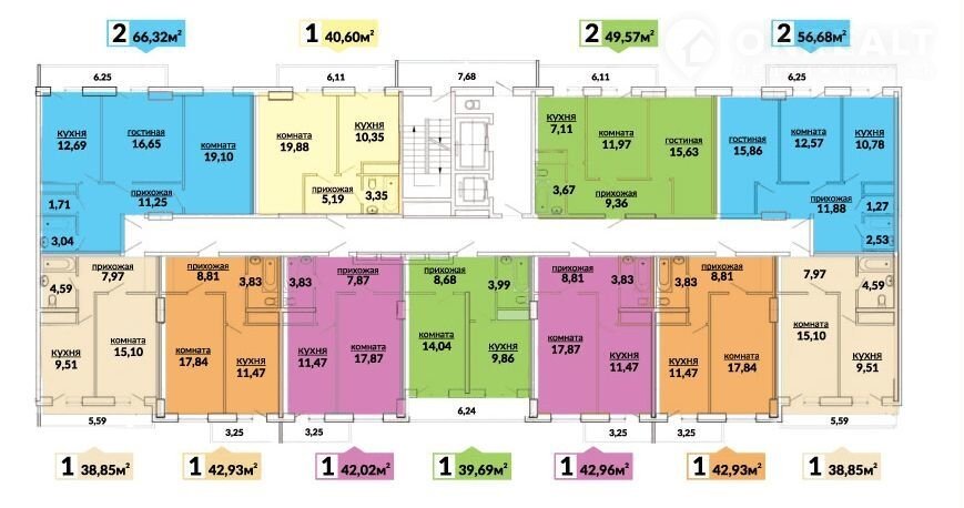 Общая площадь 43.1 м2