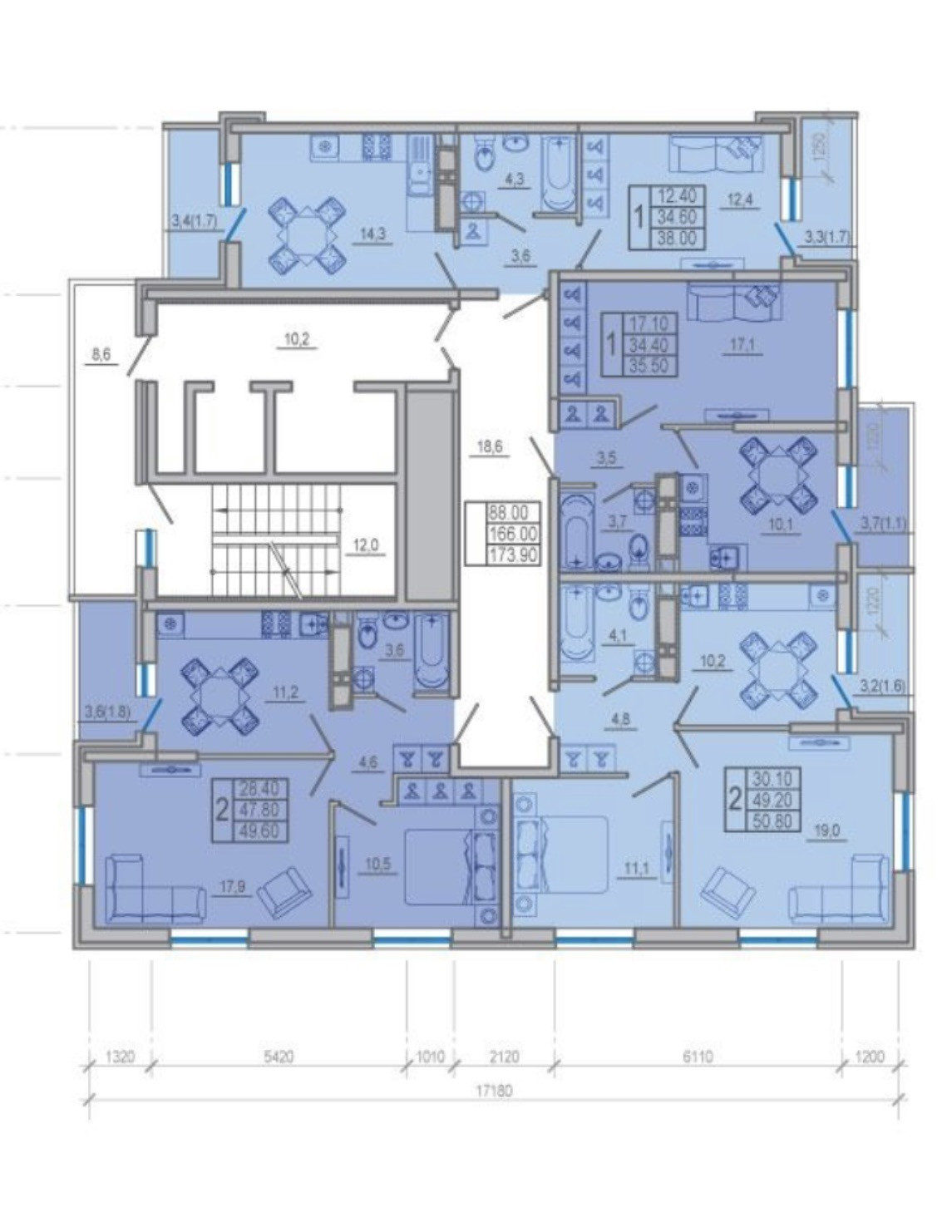 Всего четыре квартиры на этаже.