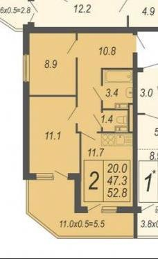 Общая площадь 52.8 м2