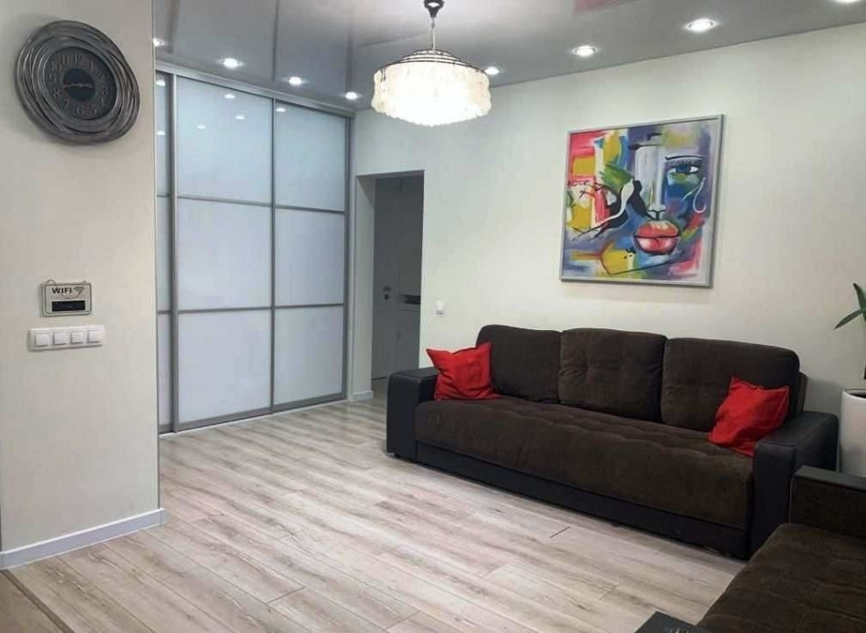 В квартире просторная гостиная, которая легко превращается в дополнительную спальню или рабочий кабинет. Кухня оснащена по последнему слову техники и имеет все необходимое для приготовления вкусных блюд.