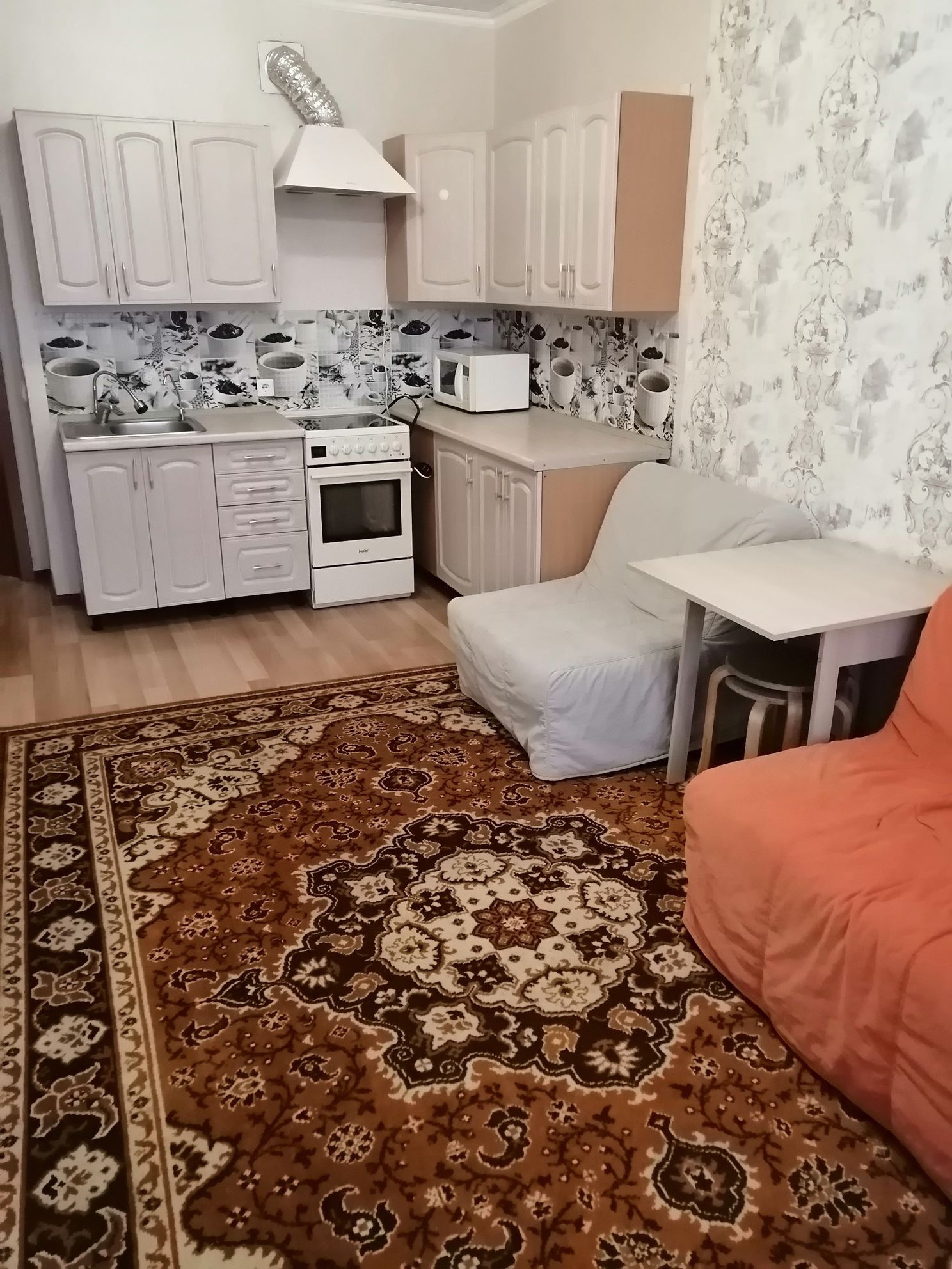 Продаю студию в зелёном микрорайоне города (Жк"Премьера"). В комплексе есть магазины, детские площадки, тренажеры, парикмахерские,аптеки, есть наземная парковка. В пешей доступности находятся остановки общественного транспорта, магазин"Магнит" и "Пятёрочка", ГМ"Окей", Парк "Солнечный остров". Рядом находятся  детские сады, поликлиники, школы, аптеки, парикмахерские.                                     В квартире сделан ремонт, ванная комната вся в плитке, (в коридоре и на балконе на полу- уложена плитка), балкон, застеклен. В зале уложен ламинат. По всей квартире - натяжные потолки. В квартире остаётся сплит-система, электроплита, кухонный гарнитур.       В квартире никто не прописан, никто не проживает, обременений нет. Собственник один.