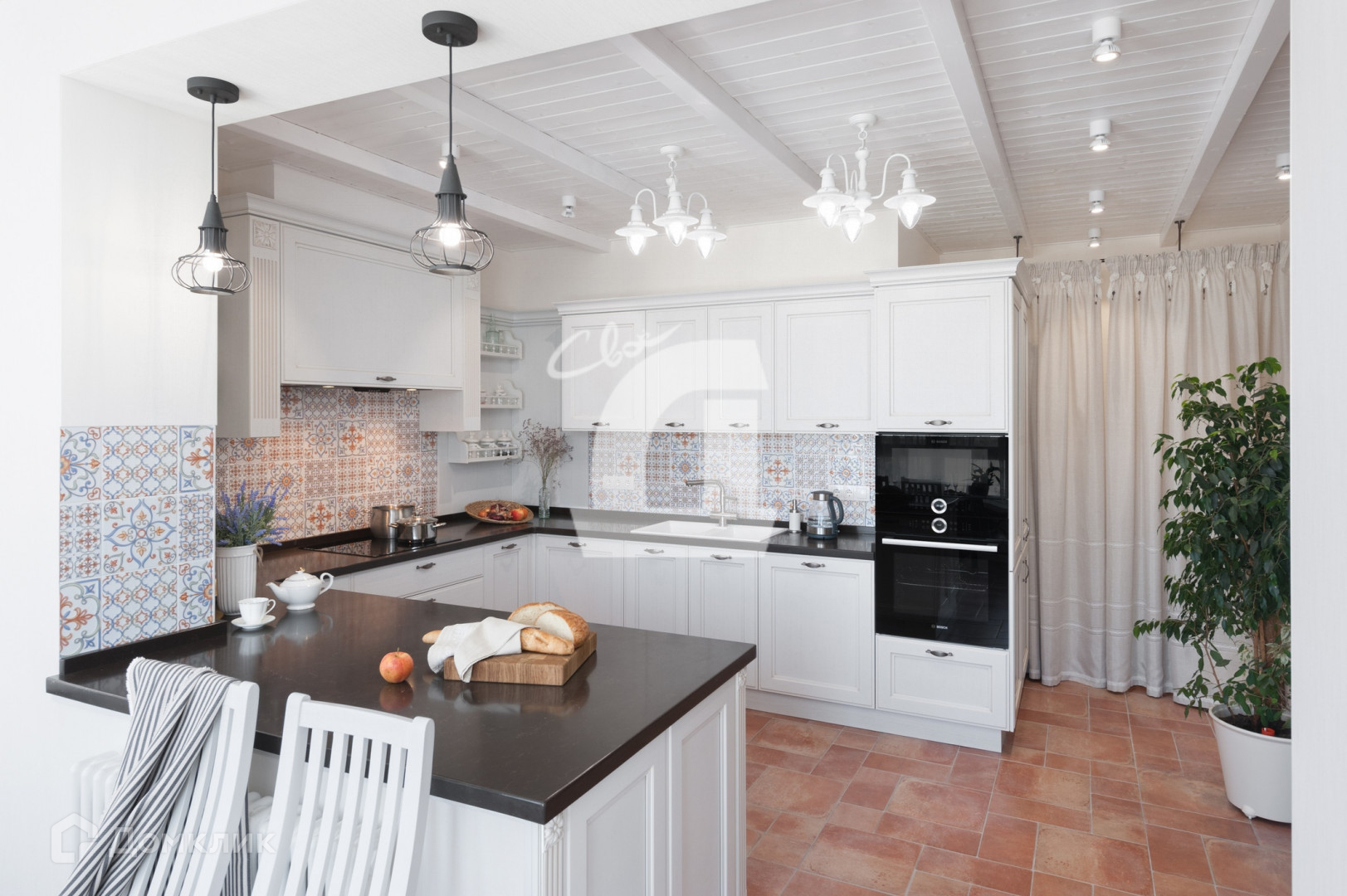 встроенная бытовая техника: встроенный холодильник, посудомоечная машина, духовой шкаф, микроволновая печь BOSH.