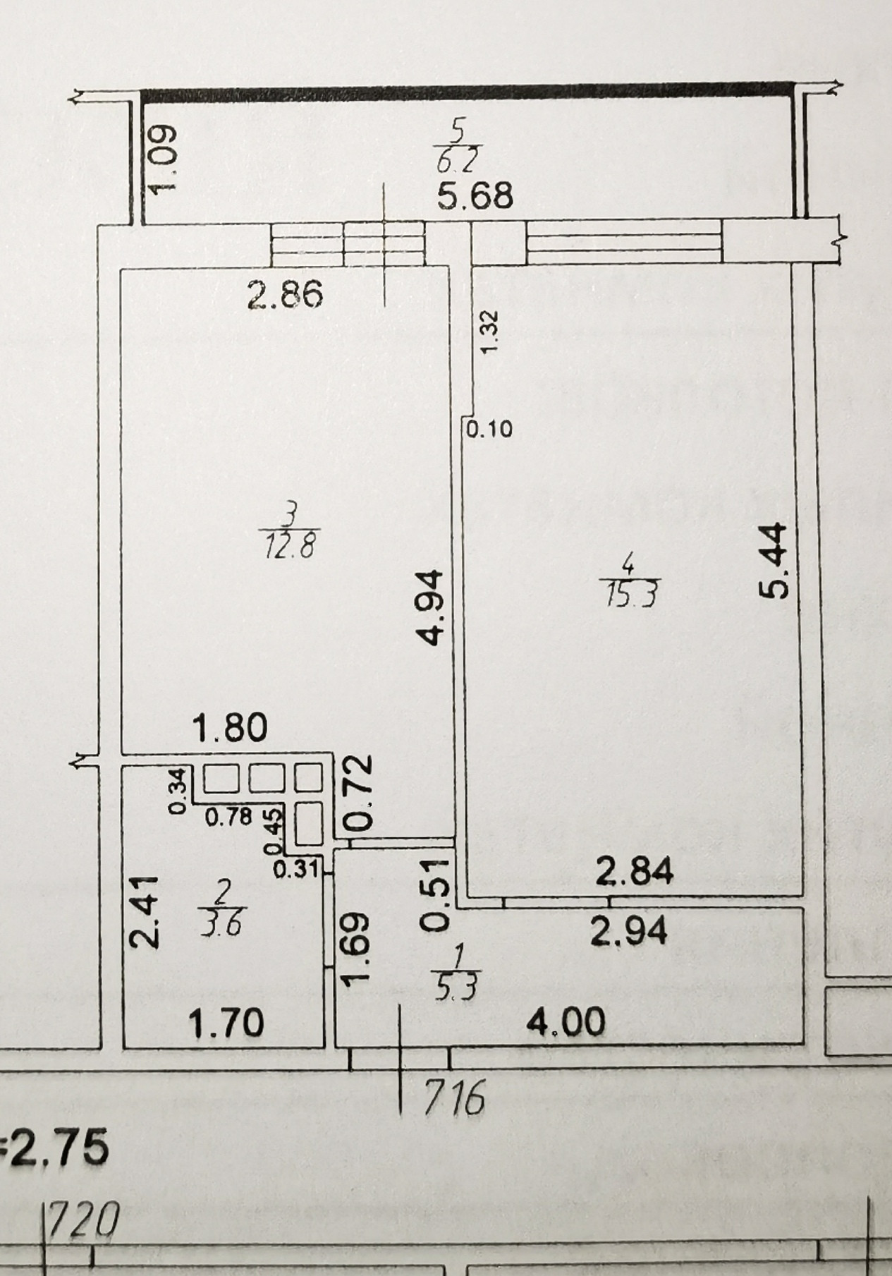 Общая площадь 38.4 м2