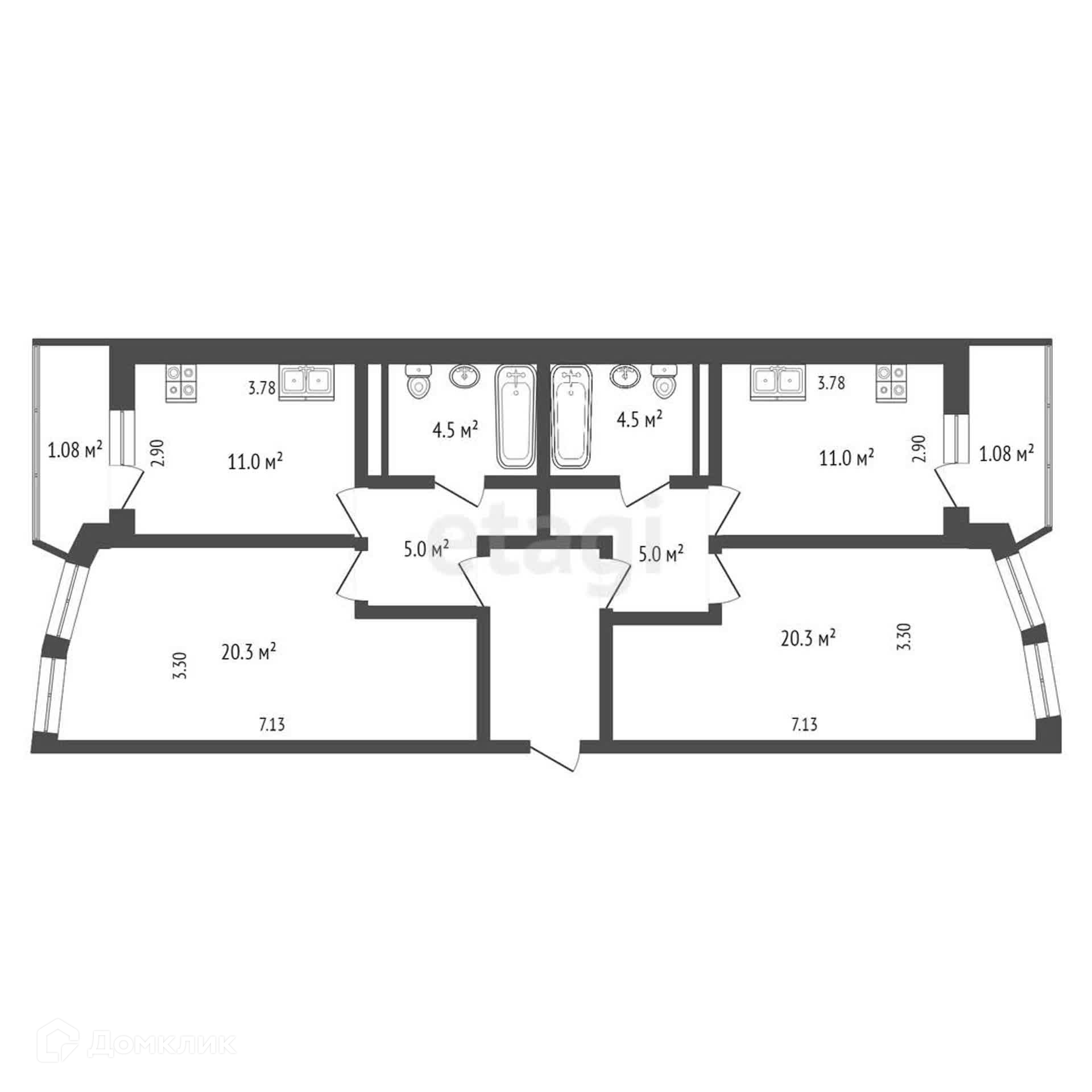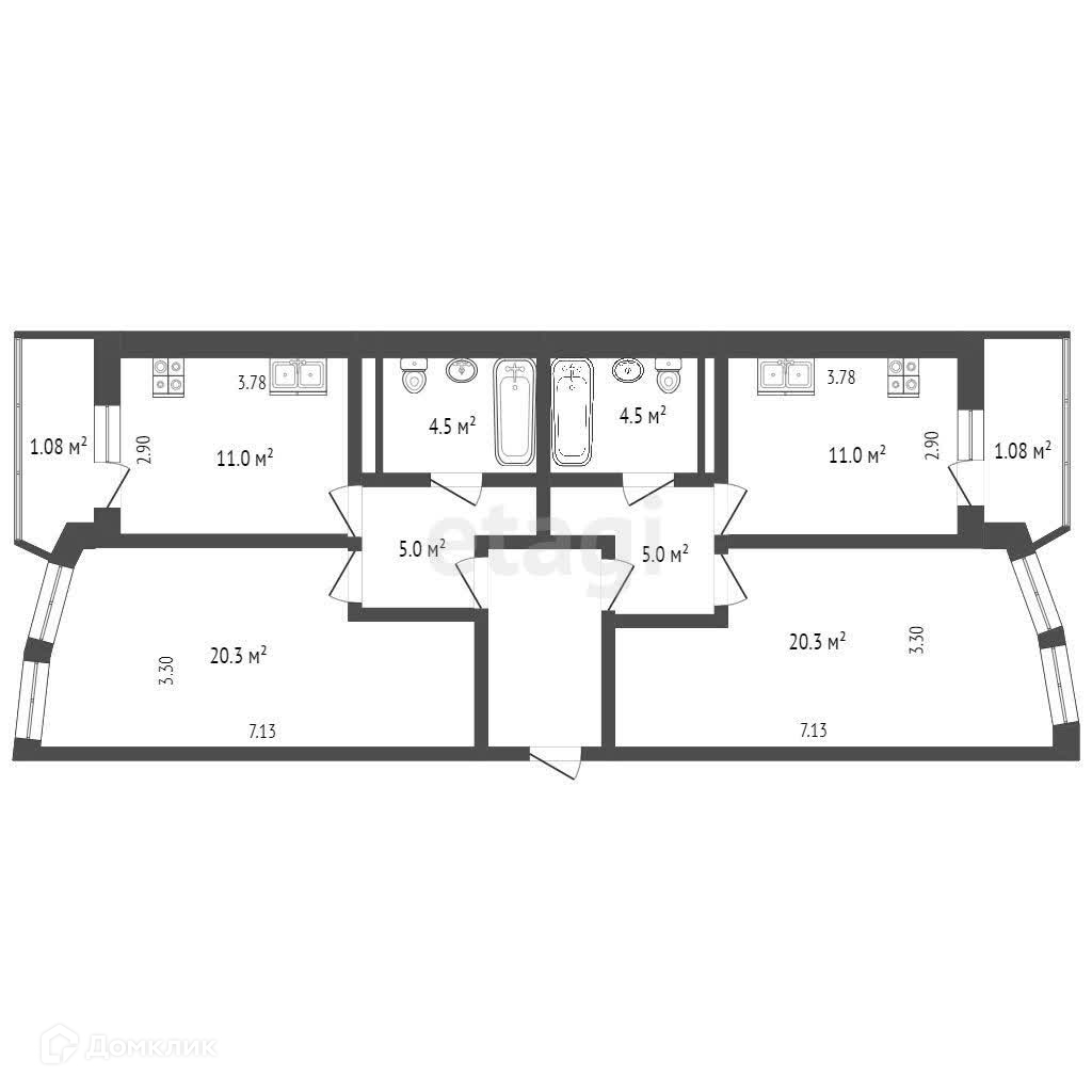 Общая площадь 42.9 м2