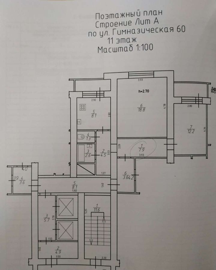 Высота потолков 2.7 м