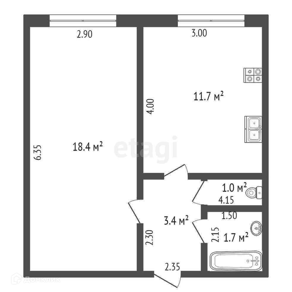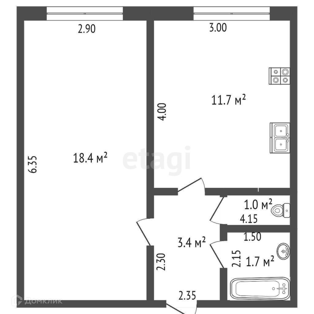 Общая площадь 17 м2